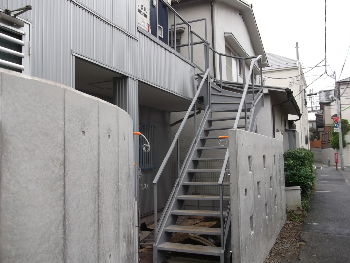 6月 新築アパート外階段工事(ガラスパネル用手摺) 東京世田谷区